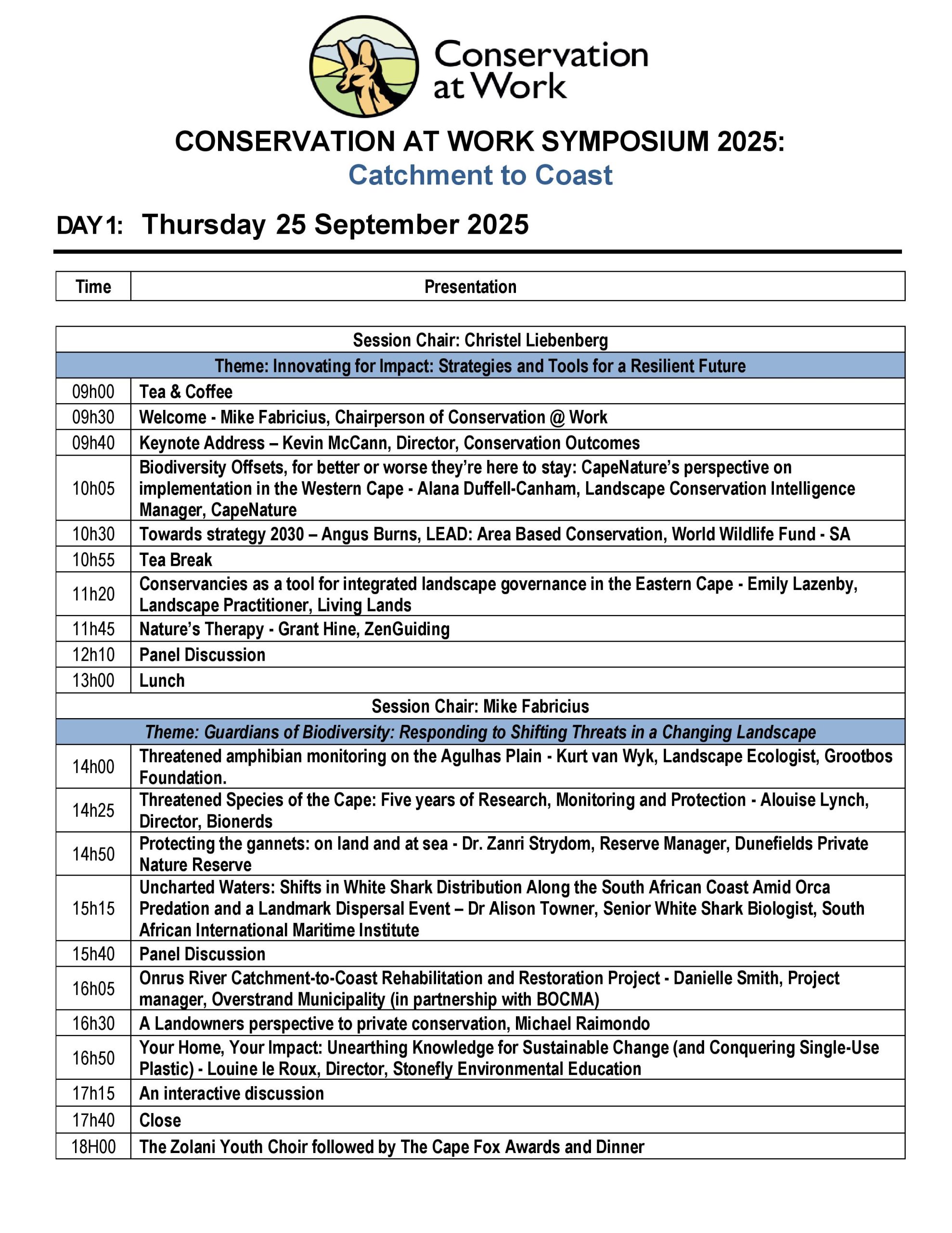 As the symposium concluded, one message rang clear: collaboration and connection remain at the heart of protecting South Africa’s biodiversity—from catchments to coast.