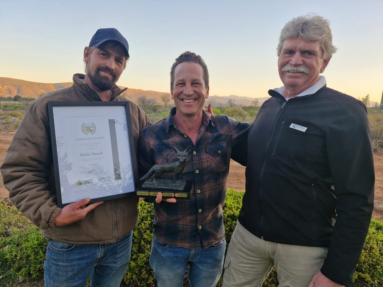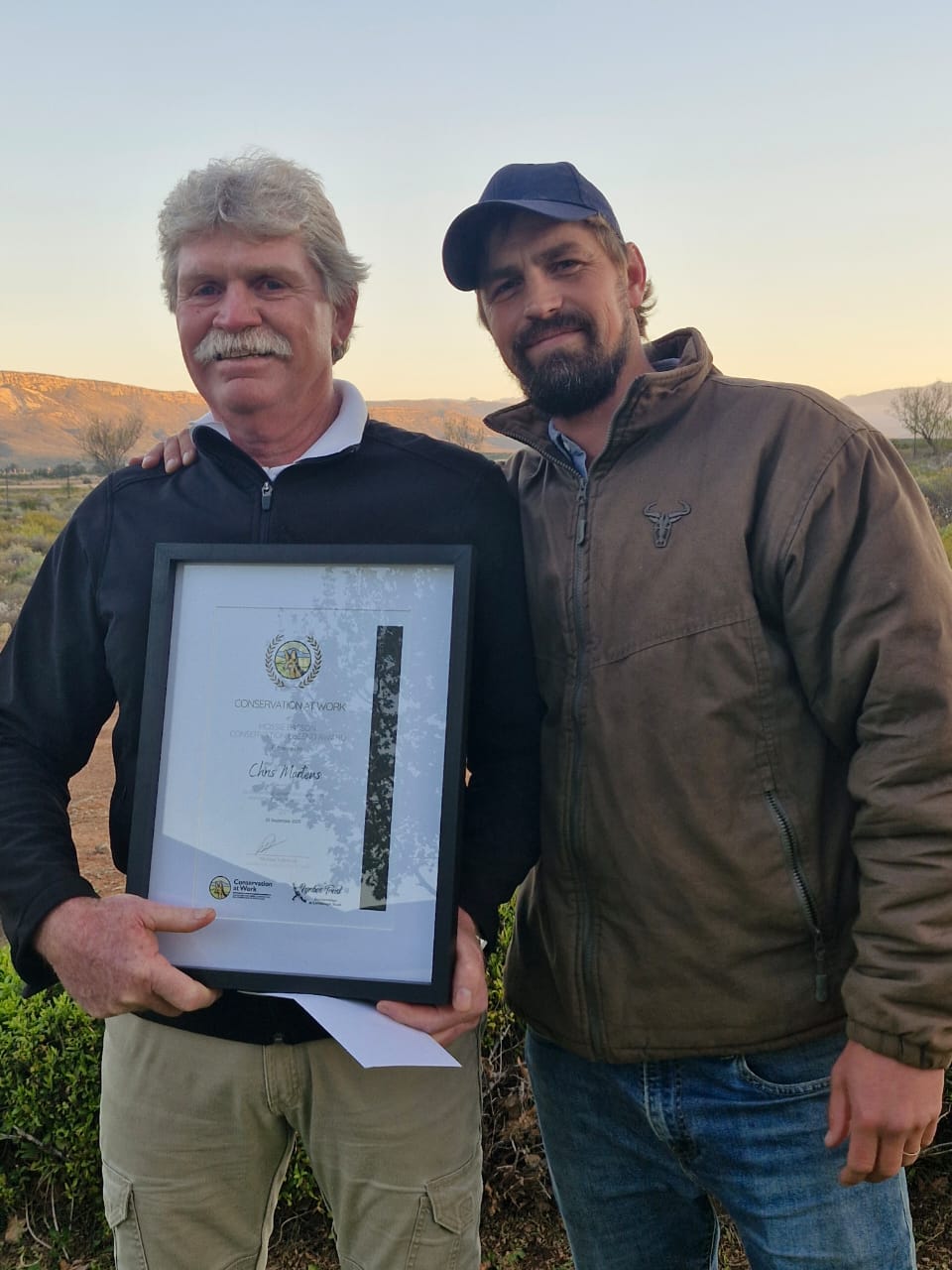 Chris Martens receiving the Mossie Basson Legend awarded by Michael Fabricius chair of Conservation at Work